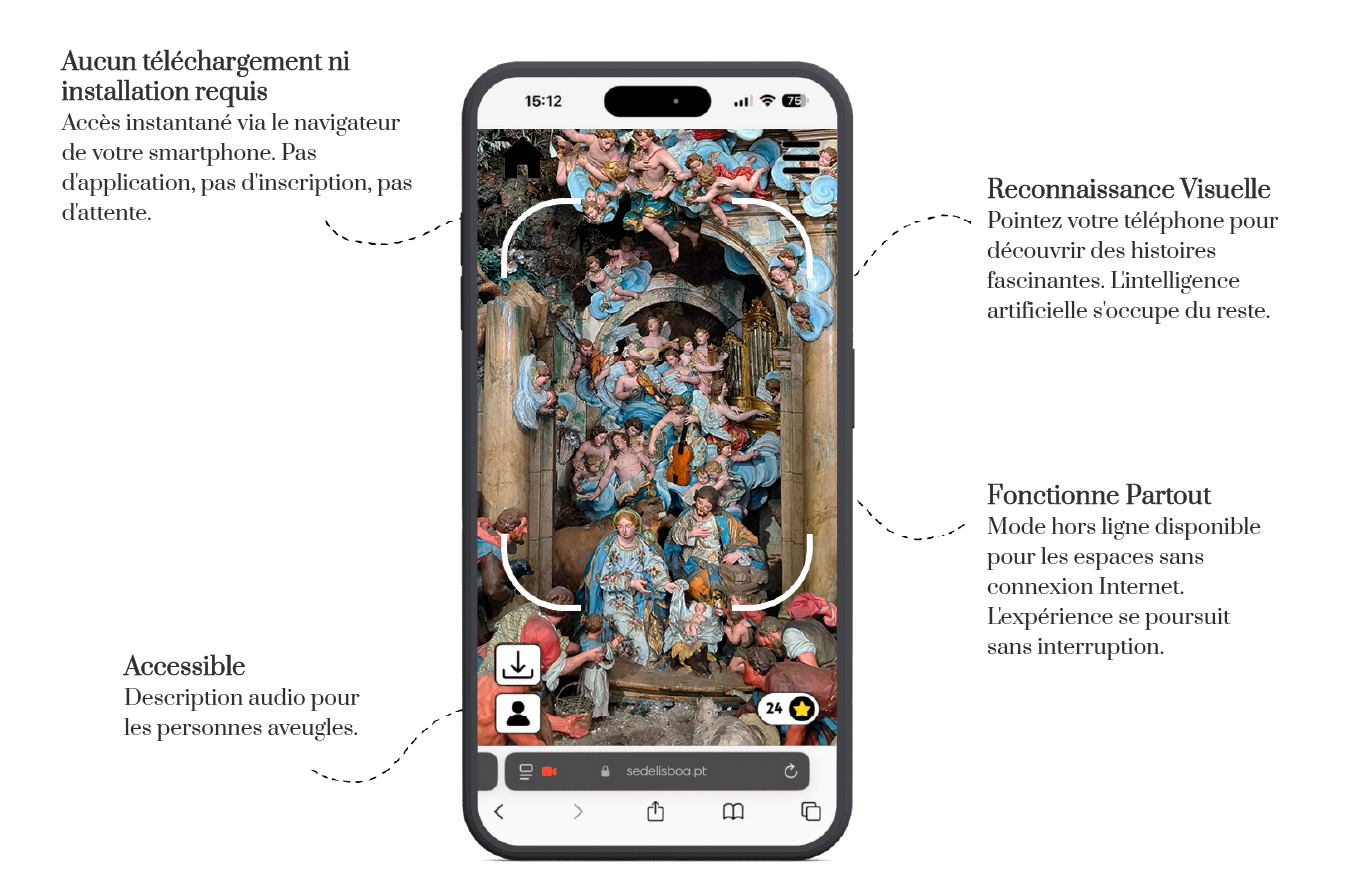 *Découvrez les secrets de la cathédrale de Lisbonne grâce à une visite interactive et intuitive guidée par votre smartphone, qui comprend un audioguide utilisant l'intelligence artificielle. Disponible en six langues (allemand, espagnol, français, anglais, italien et portugais).