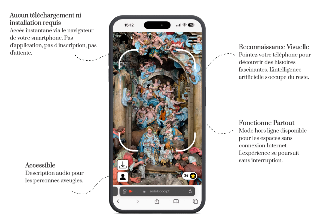 *Découvrez les secrets de la cathédrale de Lisbonne grâce à une visite interactive et intuitive guidée par votre smartphone, qui comprend un audioguide utilisant l'intelligence artificielle. Disponible en six langues (allemand, espagnol, français, anglais, italien et portugais).